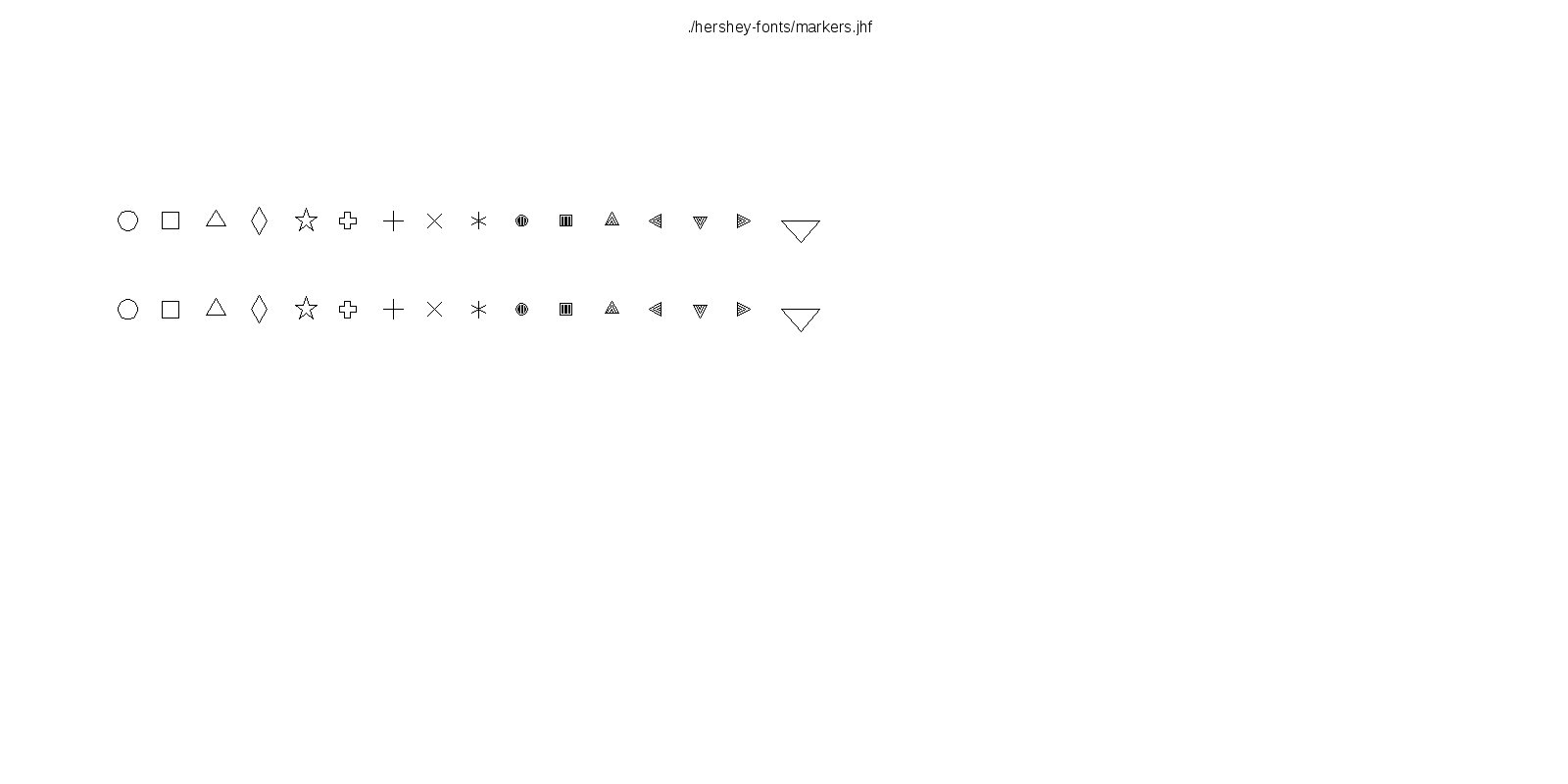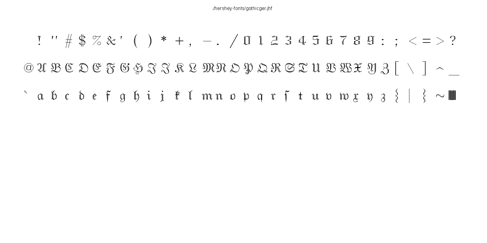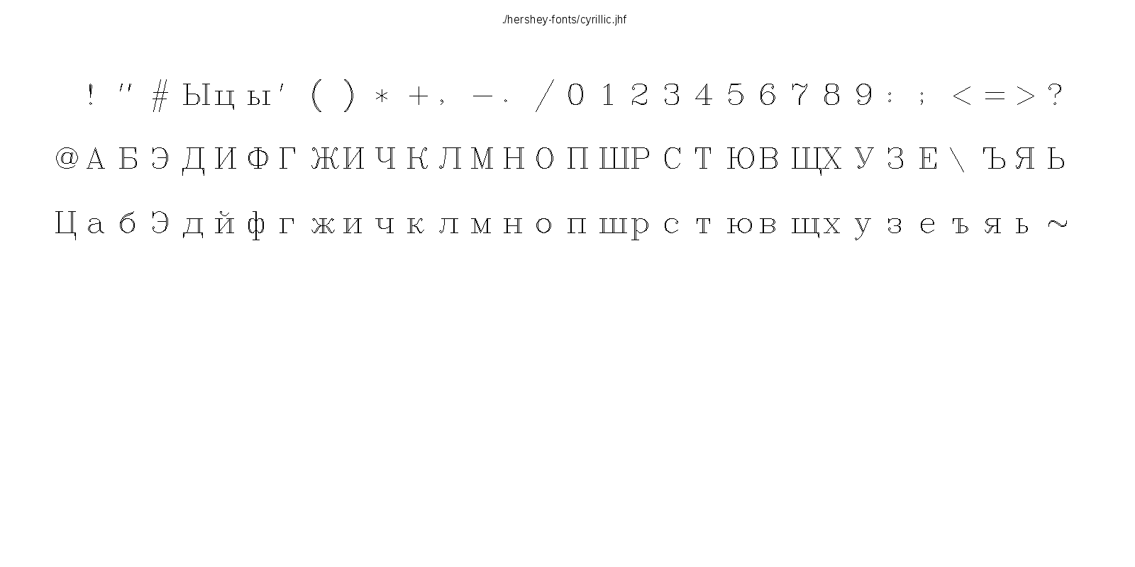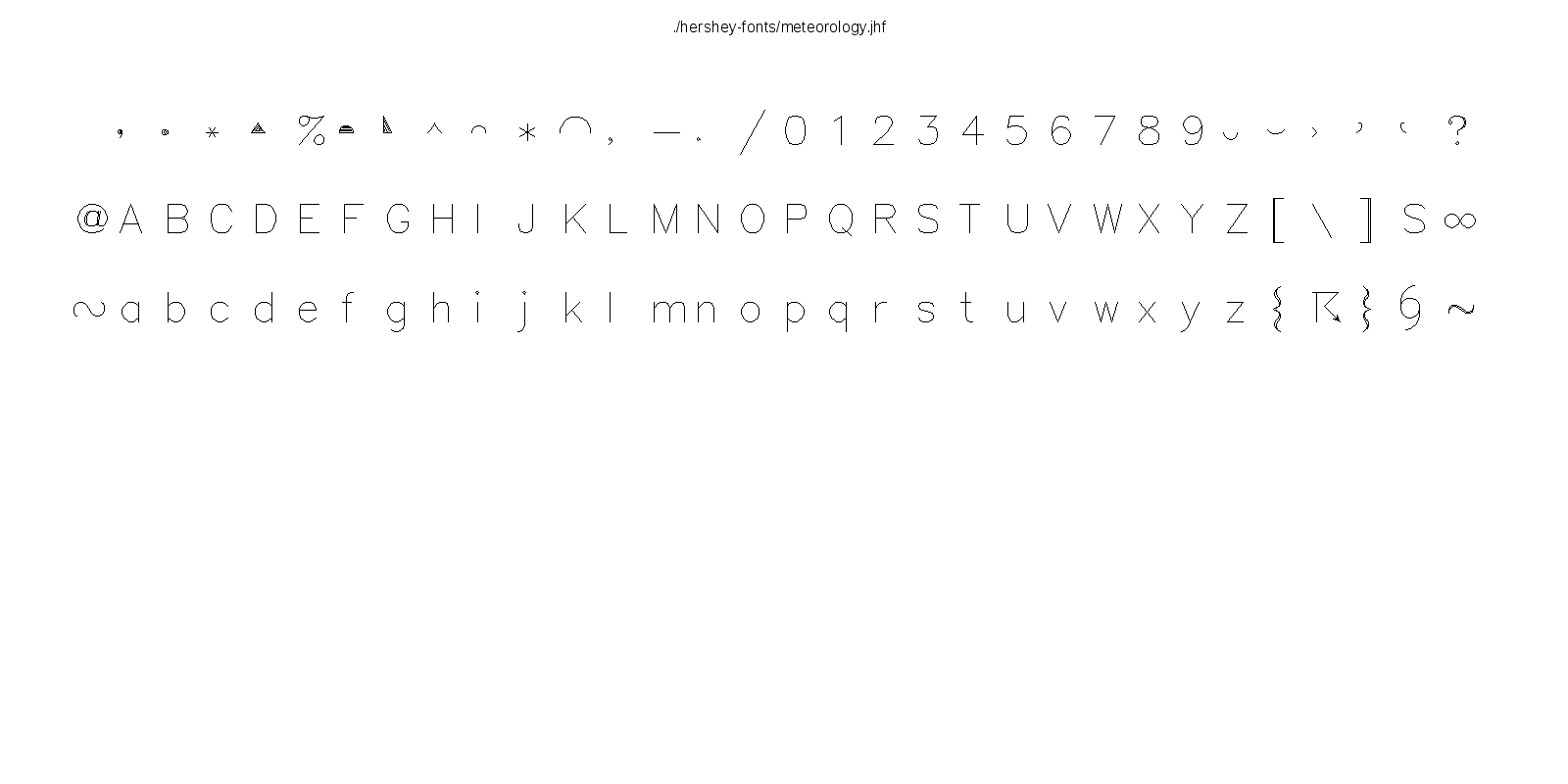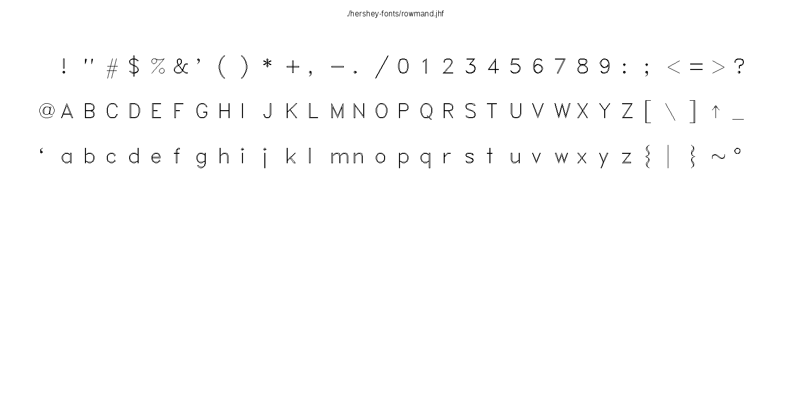 This hershey-fonts package includes Kamal Mostafa's libhersheyfont (a 2013 GPL C library for loading Hershey font files), a gnuplot front-end and other utility programs, as well as the Hershey font glyph data itself. The fonts were converted from Hershey's original NTIS format to the .jhf Hershey file format by James Hurt.